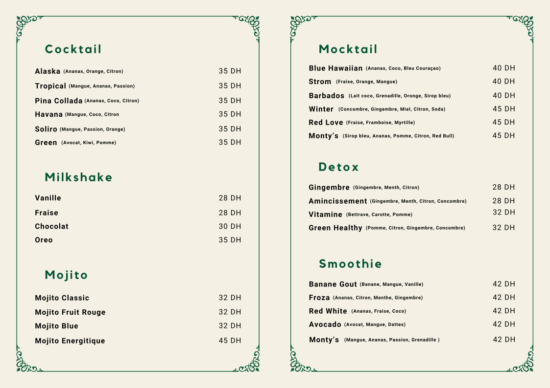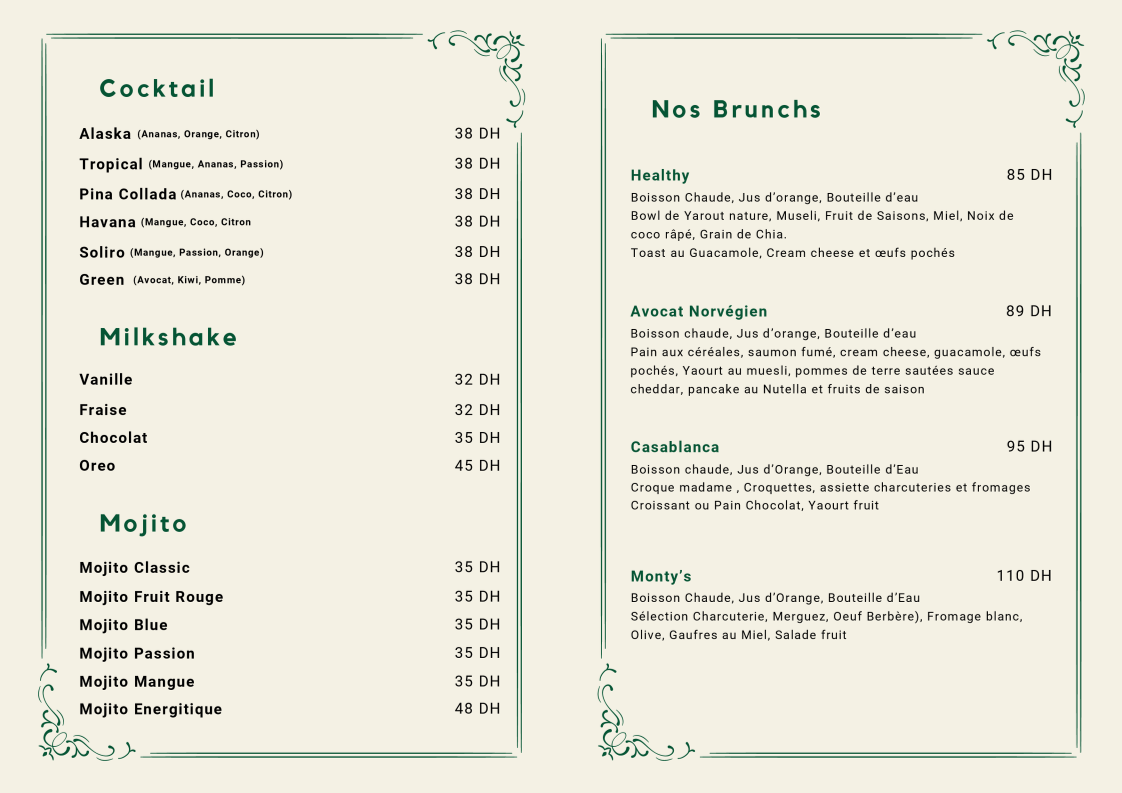 Monty's Café & Restaurant Menu